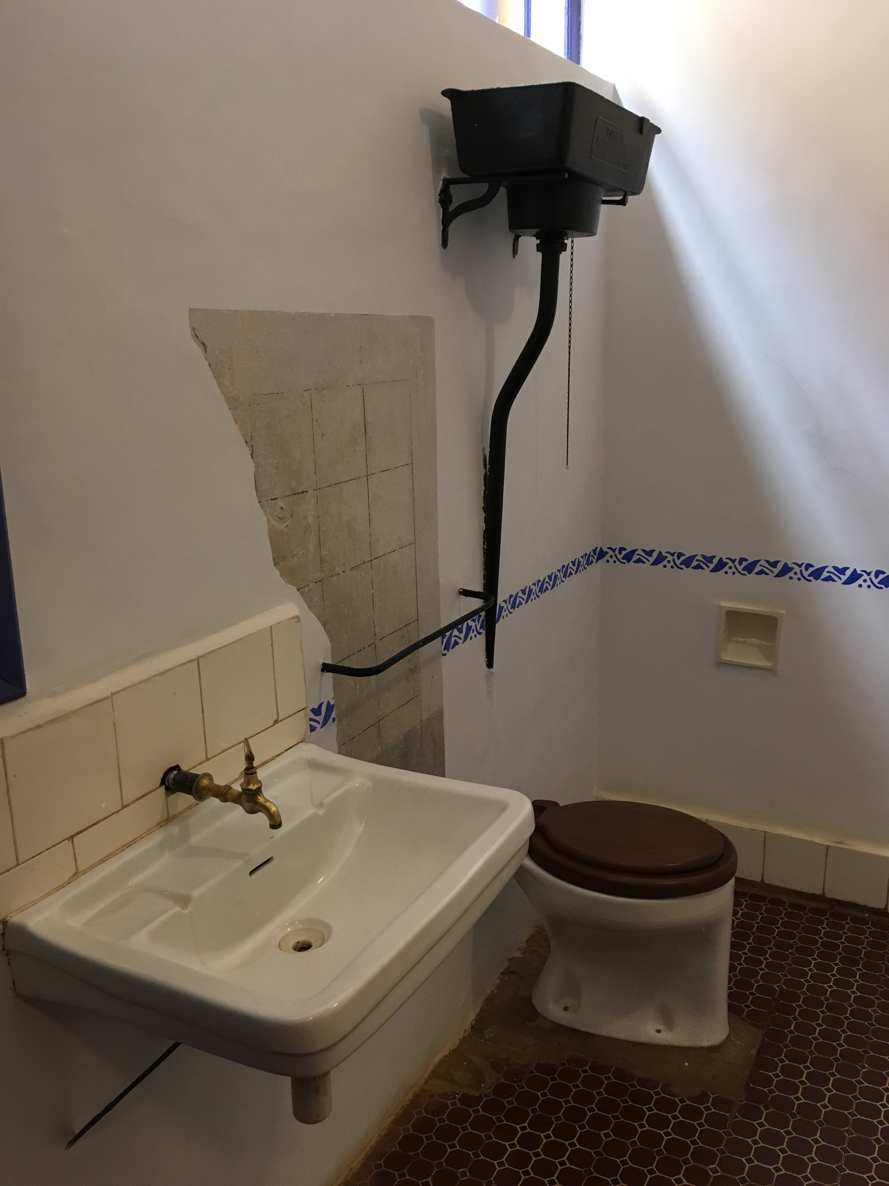 É um conjunto de casas antigas da família, superpreservadas, todas amarelas e com beirais azuis, portas baixas, pisos originais, banheiros com relíquias de pelo menos 80 anos, tudo muito bem cuidado. E o mais incrível: a entrada é franca.