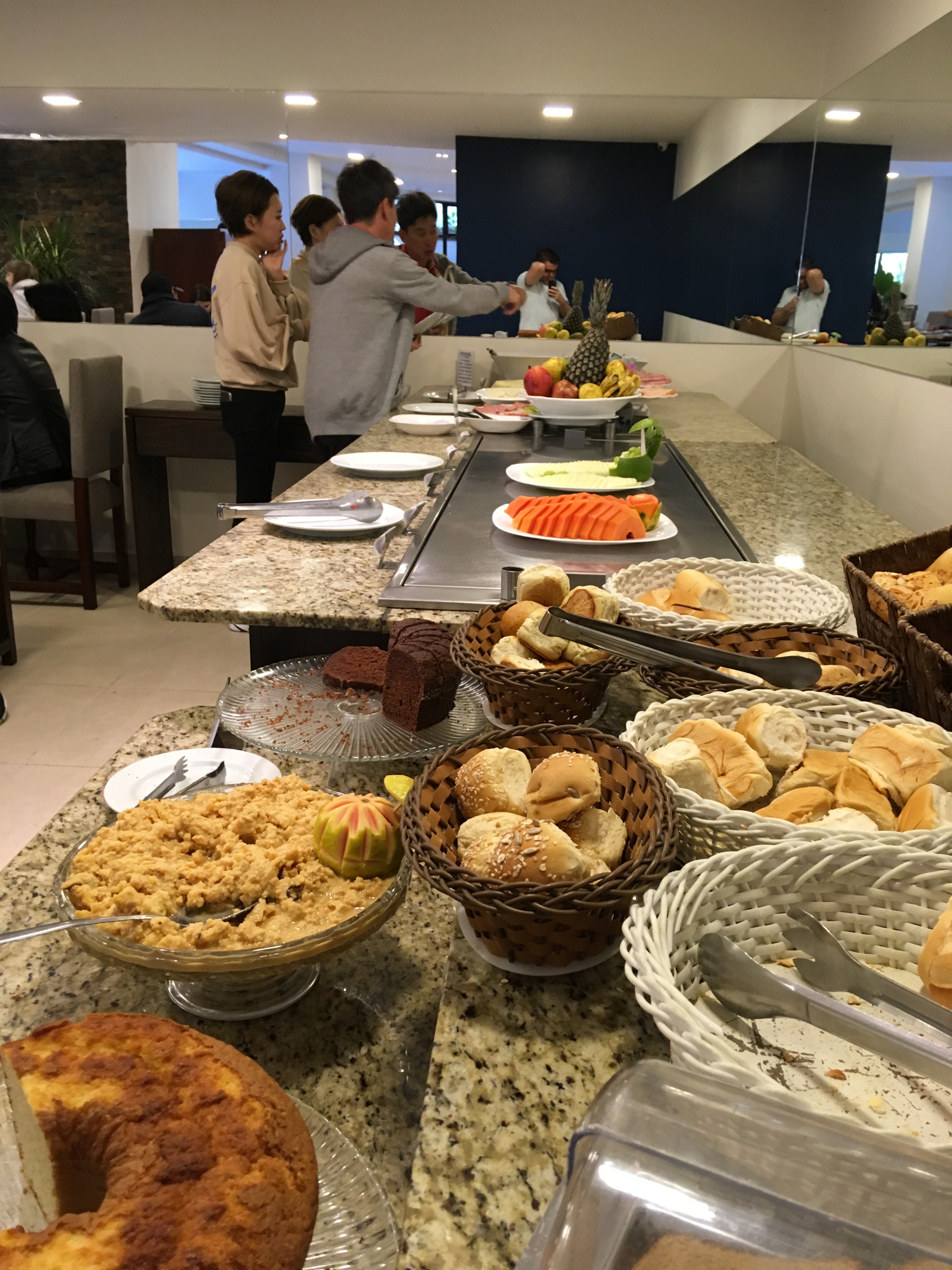 O café da manhã do hotel é no restaurante Peró, bem estruturado e com boa variedade de pães, bolos, frios, ovos mexidos, frutas e sucos. A diária para casal é de R$ 189, com café da manhã. O estacionamento é cobrado à parte ($20), mas fique atento com o horário da diária. No meu caso, atrasei 9 minutos e tive que pagar duas diárias. Um absurdo! Tirando esse transtorno, a hospedagem foi bastante satisfatória.