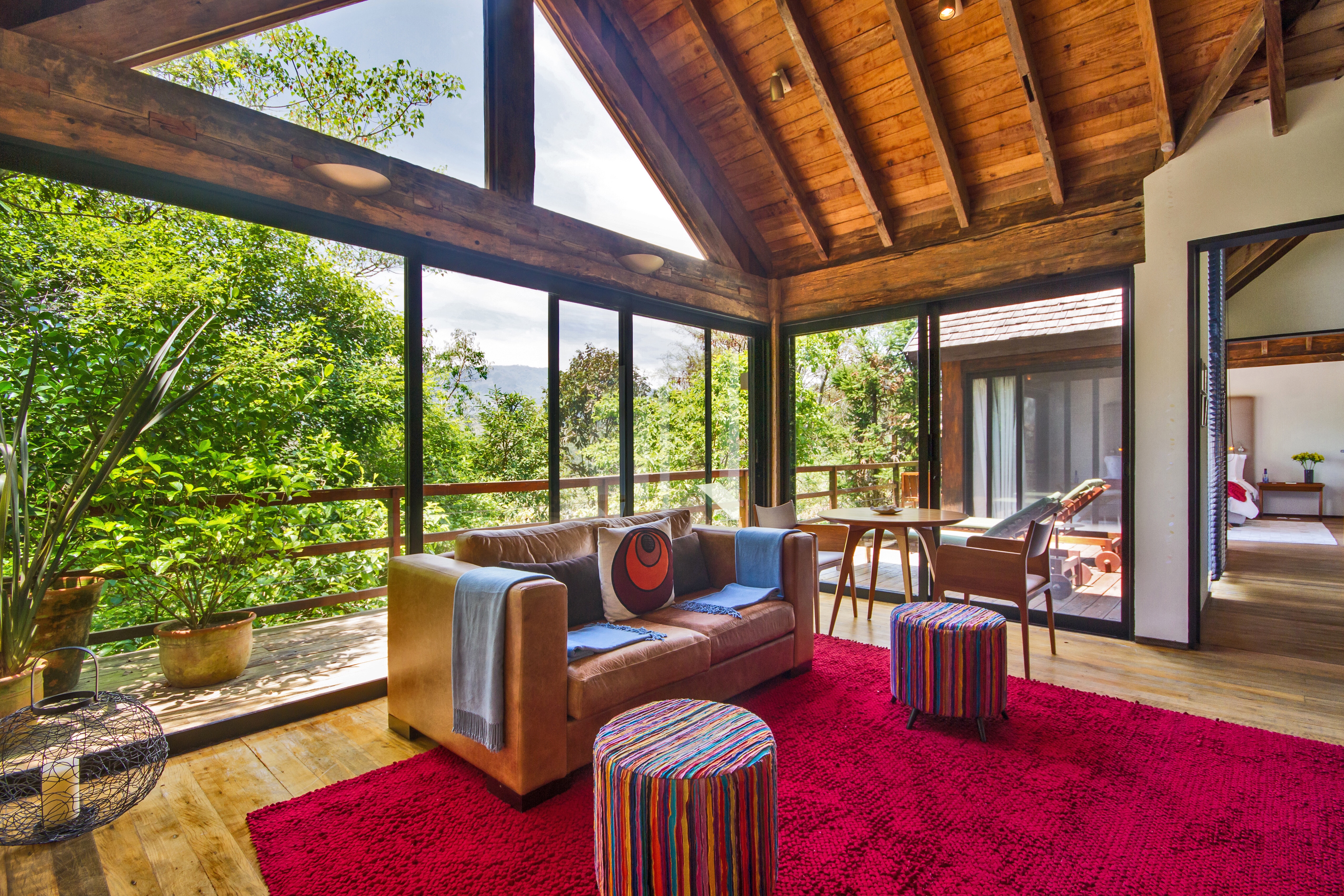 Assim nasceu o Hotel Botanique, em uma área privada de 1,2 milhões de m2, e que ocupa 80 mil m2, dos quais 7 mil m2 construídos. Um entorno de mata nativa secundária, com onças, jaguatiricas, lobos-guará e mais 163 espécies de aves endêmicas.