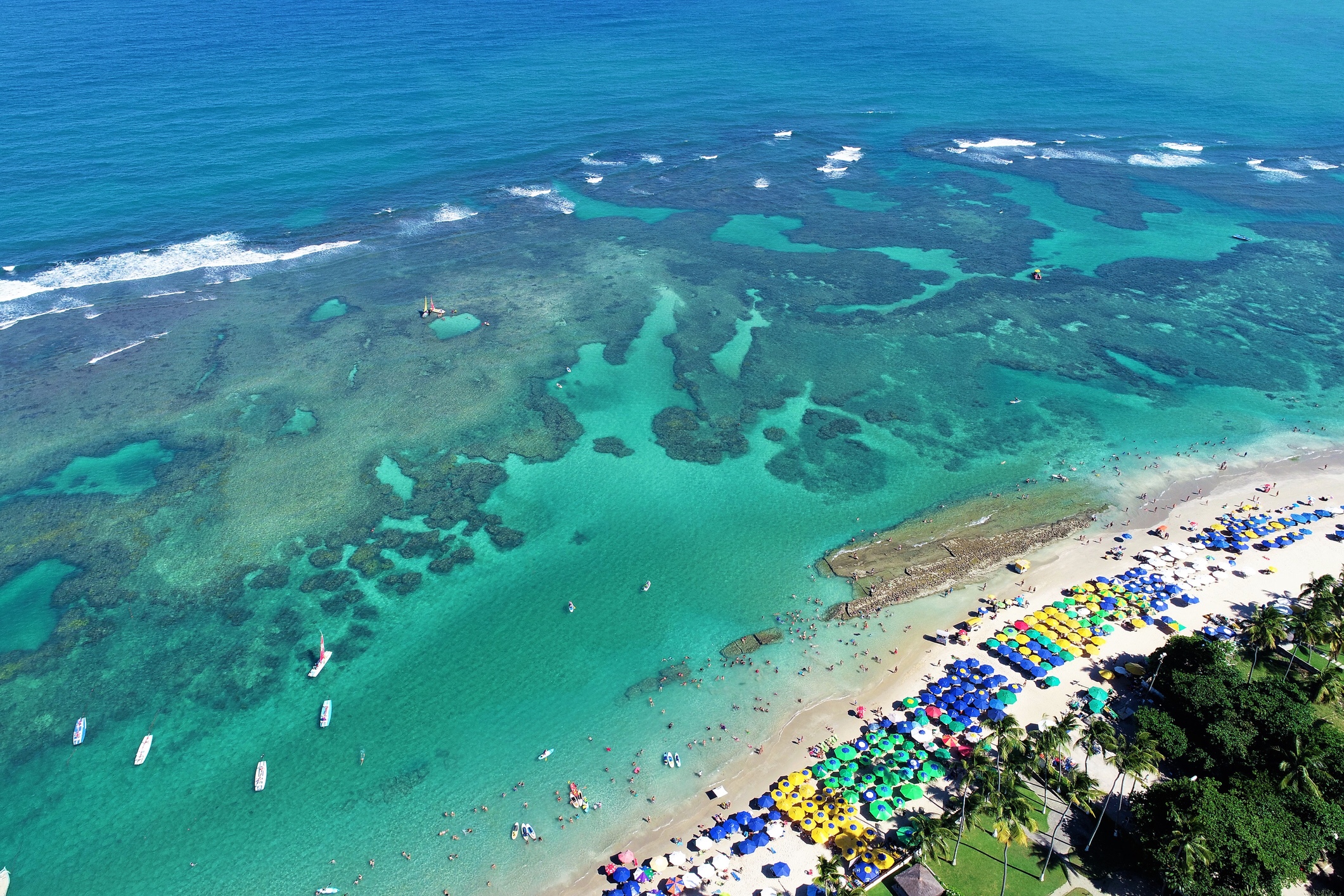 O sol brilha em um paraíso chamado Porto de Galinhas, no litoral sul de Pernambuco. O lugar era apenas uma vila de pescadores e hoje encanta os turistas com suas praias e recifes com piscinas naturais, onde a experiência de alimentar os peixinhos nas marés baixas é imperdível.