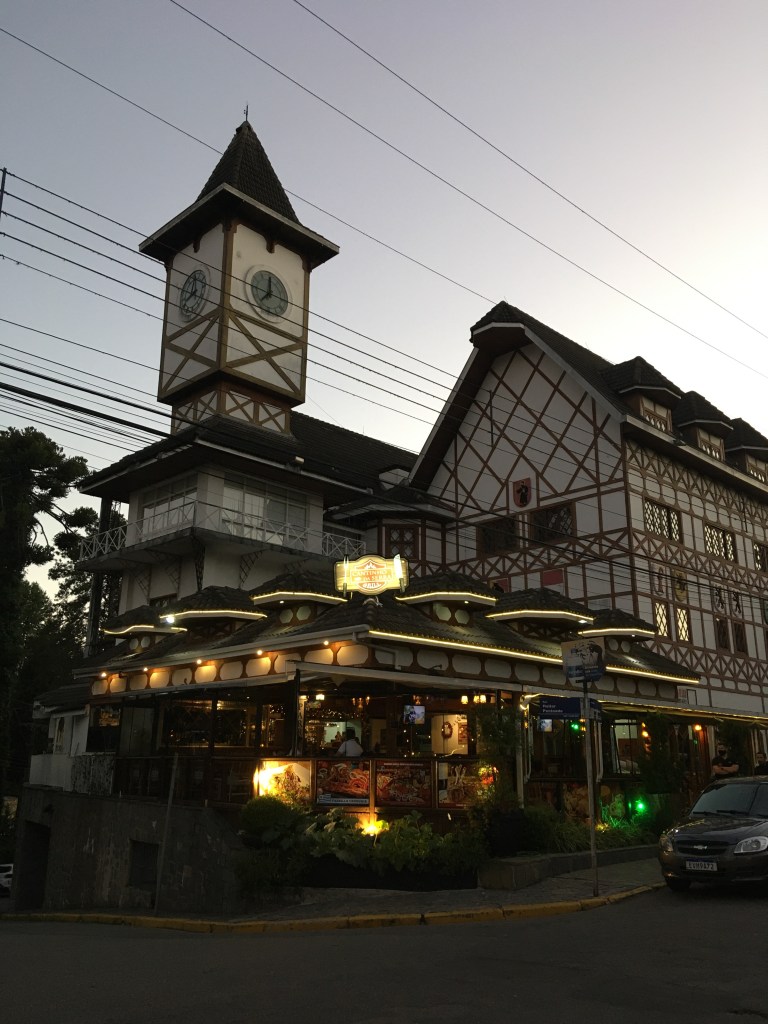 A praça do Capivari e os calçadões já estão decorados para o Natal e quando anoitece as luzes dão ainda mais charme às fachadas das lojinhas, hotéis e pousadas, todas com a arquitetura de inspiração tipicamente suíça.