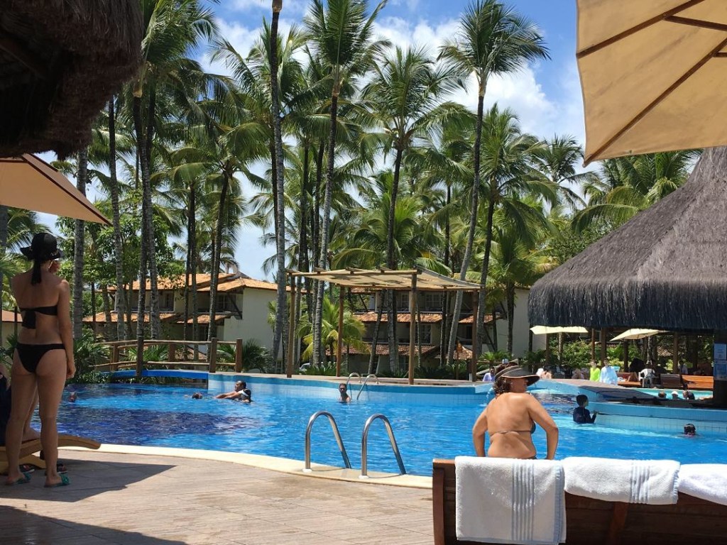 O hotel é referência em gastronomia baiana e tem uma estrutura completa de lazer, com piscinas, atividades com caiaque e stand-up e tirolesa no lago.