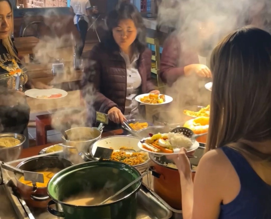 O lugar também oferece pratos bem tradicionais do interior, como frango, carne de porco, mandioca frita, couve e farofa, além de doces caseiros em calda e até pamonha. E uma fazendinha, com pesqueiro, completa o lazer dos visitantes.