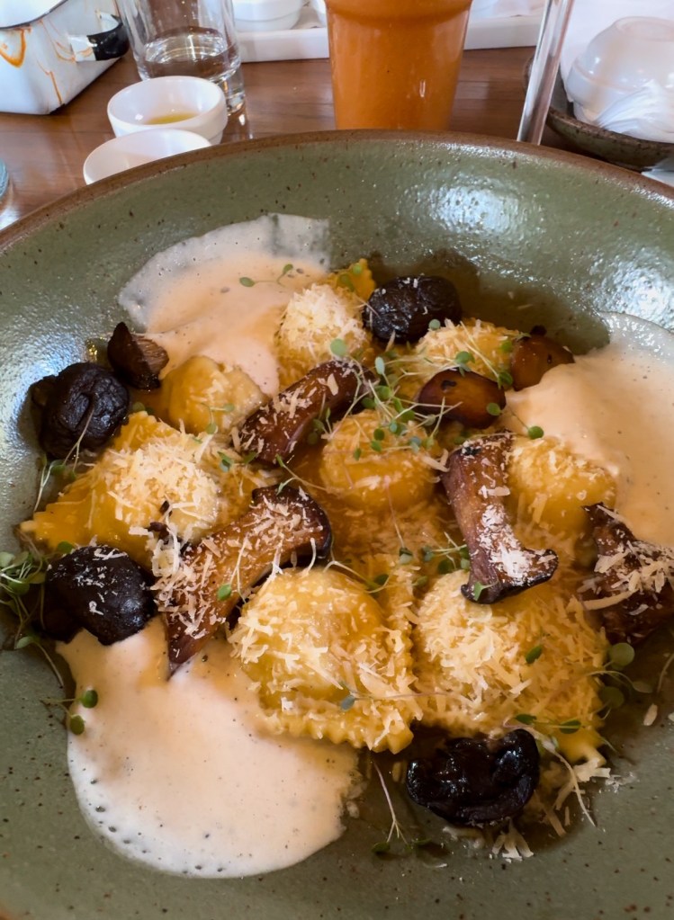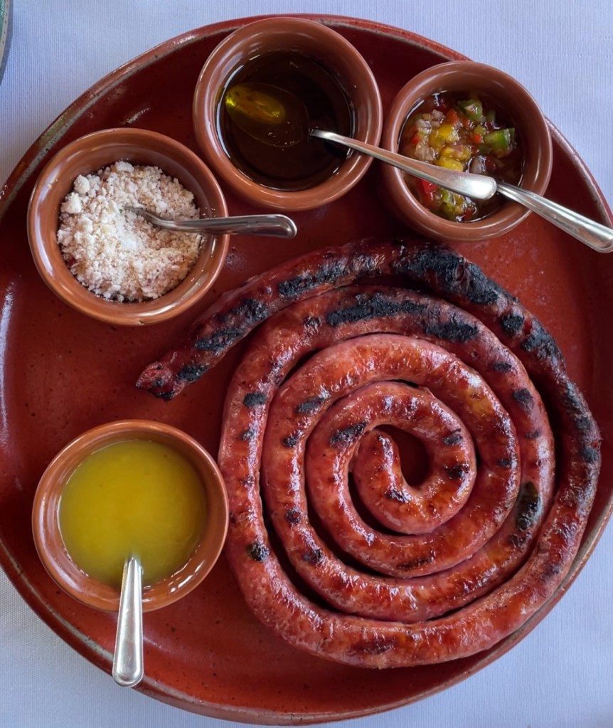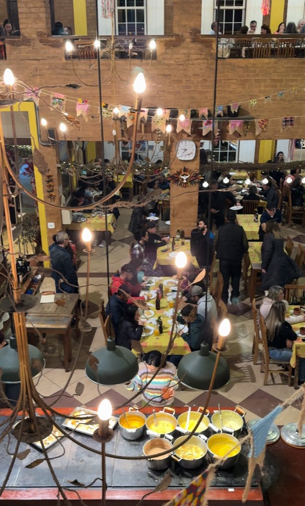 Também tem almoço com um menu de excelência gastronômica que inclui truta salmonada com crocante de ervas, sorrentino de abóbora e carne seca e até uma releitura de carne de lata com arroz piagüi e pinhão. É aconselhável fazer reserva com antecedência.